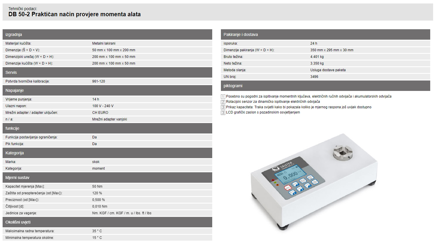 Idealan je za ispitivanje momentnih ključeva, električnih ručnih odvijača i akumulatorskih odvijača