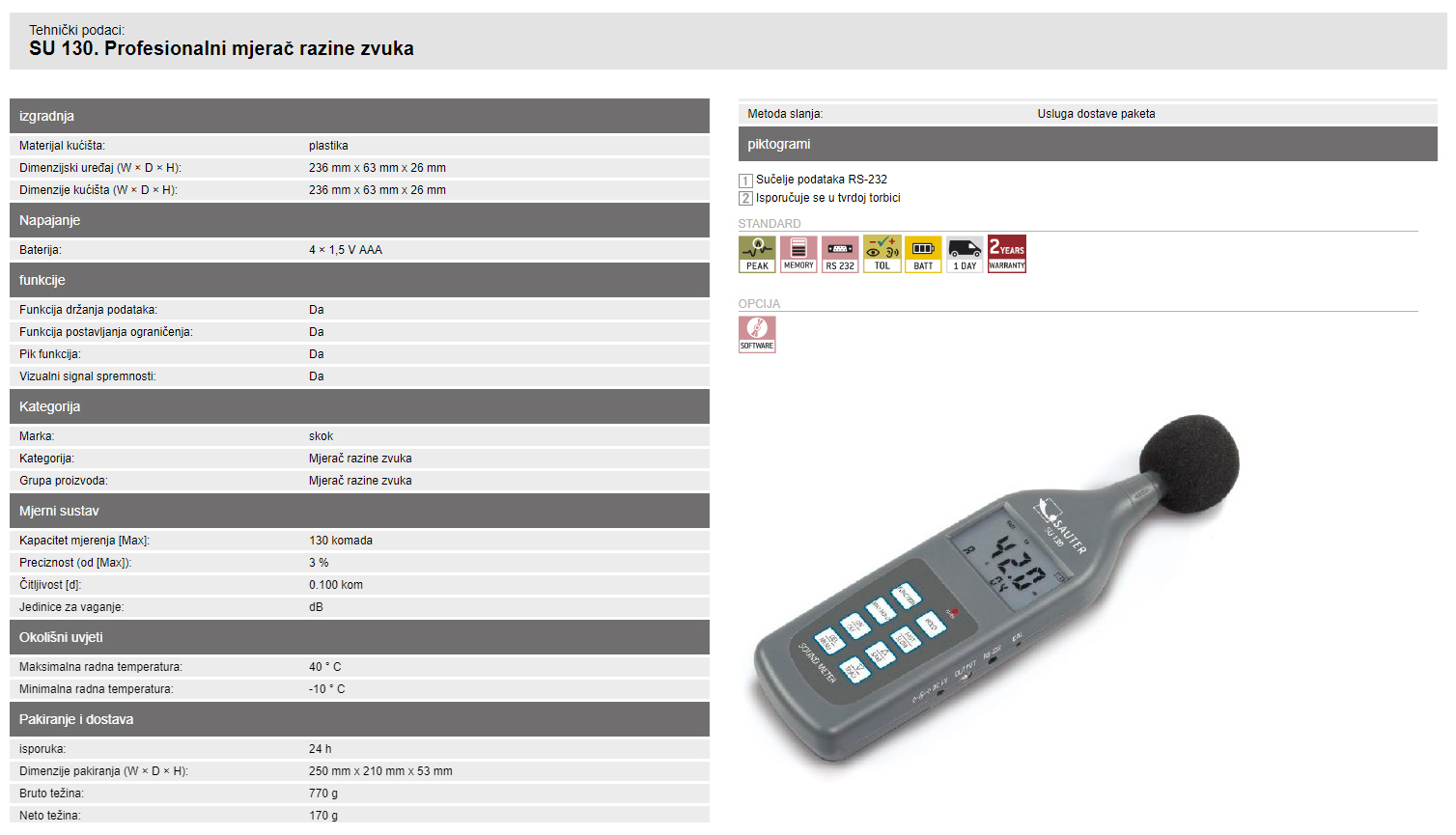 Profesionalni mjerač razine zvuka za mjerenja buke u takvim područjima. B. okoliš, mehanika, automobilska industrija i dr.
