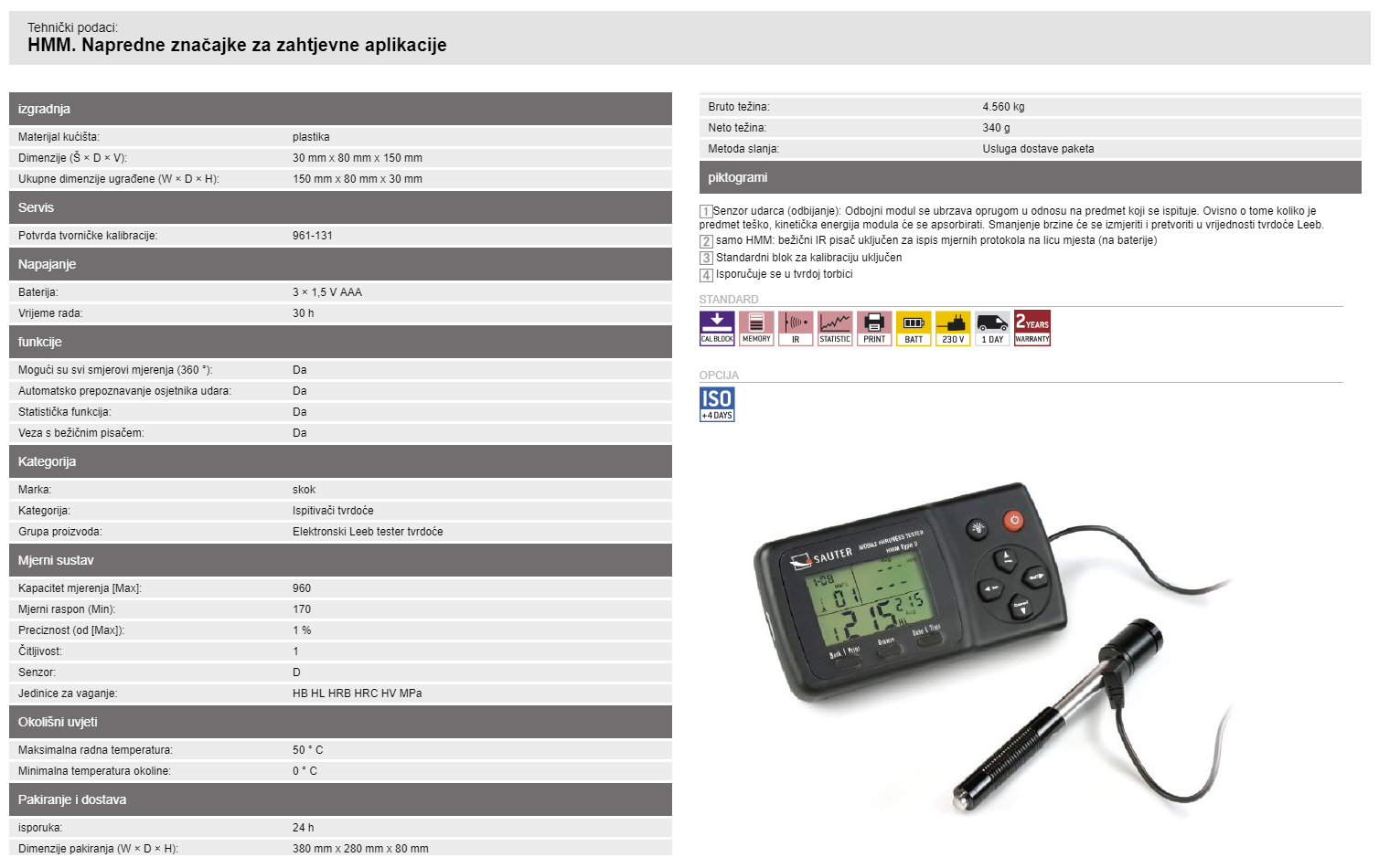 samo HMM: bežični IR pisač uključen za ispis mjernih protokola na licu mjesta (na baterije)