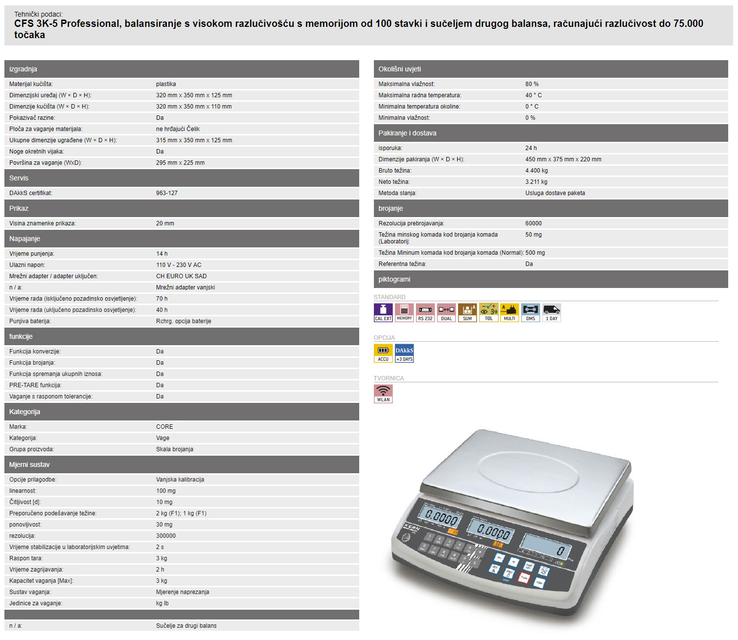 Masa vaganja (kg): 3 Podjela vaganja (d): 0,01 Dimenzije površine vaganja (mm): 295 mm x 225 mm