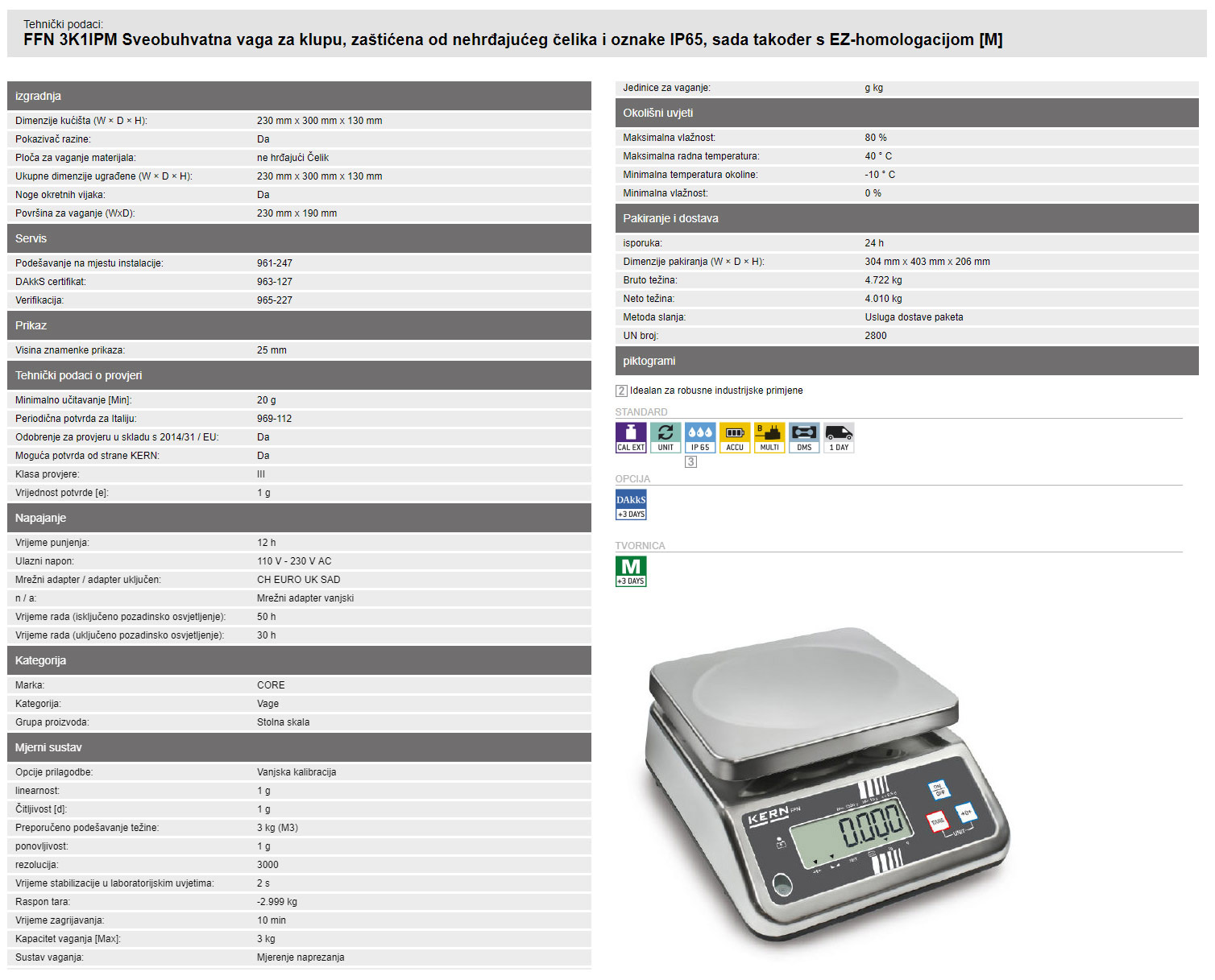 Precizna višestruka KERN vaga od nehrđajućeg čelika IP65 s EC homologacijom [M] FFN 3K1IPM